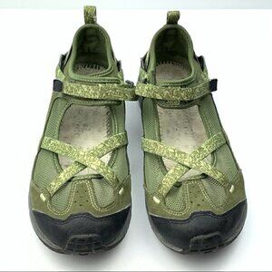 lands end womens walking shoes size 6.5 D green suede sticky strap outdoors trail lightweight