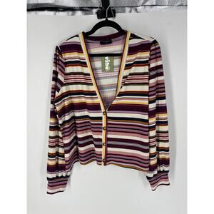 lane bryant gabrielle striped deep plunge button front cardigan