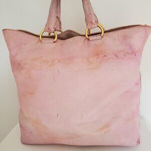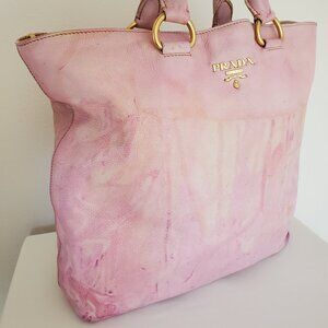 large Prada leather bag beige ivory Pink XL double handle Tote shopper tie dyed