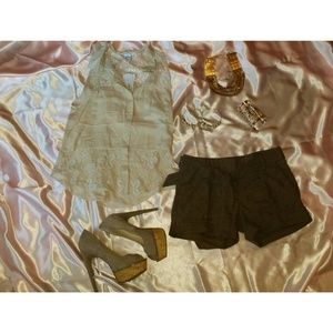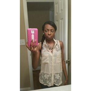 Laser lace design on front and back of shirt, cream color, button down front, light material