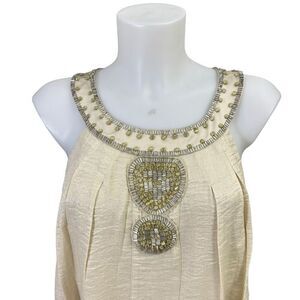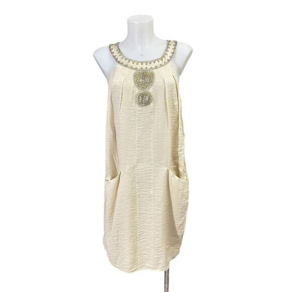 laundry Scoop Neck Crepe Shift Dress Mini Embellished Neckine light gold sz 8