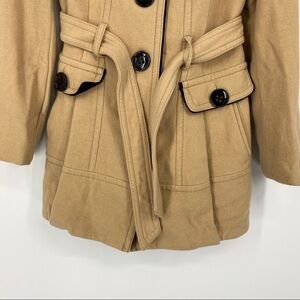 laundry by design wool peacoat tan w/ black velvet button closure belted