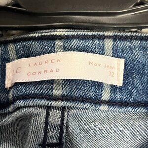 Lauren Conrad woman’s Jeans in size 12, designed in a classic 90s-inspired woman’s jean style. The jeans are made of solid medium wash denim fabric with a high rise and a regular fit. They feature a zip closure, 5-pocket design, and are machine washable. The material is denim, and the brand is LC Lauren Conrad.