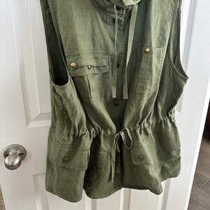 lauren ralph lauren linen safari vest 2x olive green cargo utility drawstring