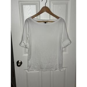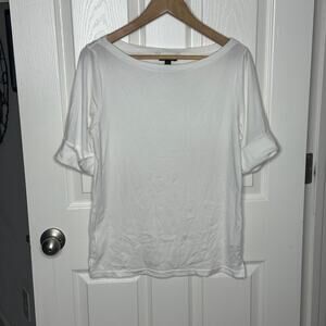lauren ralph lauren white boat neck cuff sleeve cotton stretch top size large