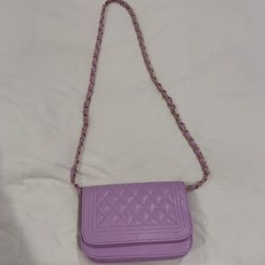 lavender color purse with shoulder strap
