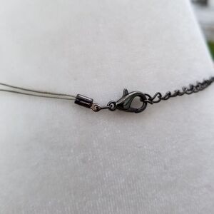 layered wire necklace with black pink and brown glass beads