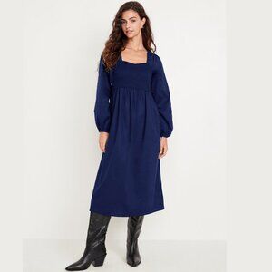Old Navy Fit & Flare Long Sleeve Midi Dress Sweetheart Neck Navy