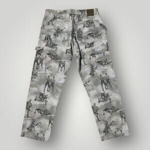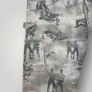 le PÈRE Painter's Trouser 34 x 30 Tap Out Ink Wrestling AOP Graphic Jeans NWT