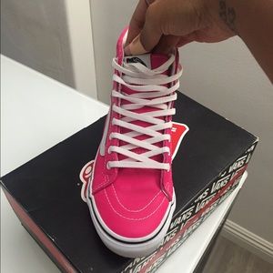 leather hot pink sk8 hi vans - gently worn. Condition 9/10. Email kimmyscloset7@yahoo.com for offers/inquiries