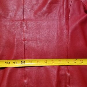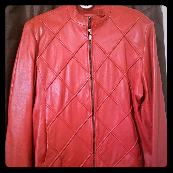 Red Hot leather jacket with quilted front. Fully lined. You will definitely get noticed in this lil red one.