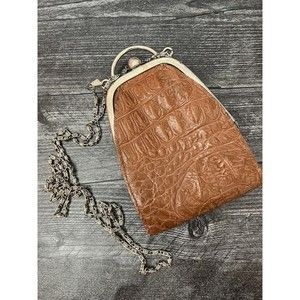 Add a touch of vintage glamour to your evening look with this stunning leather purse. Crafted in Italy, this small purse features a chic brown color and a chain strap for easy carrying. Perfect for cocktail occasions, this purse is made of high-quality leather material that exudes a classic and timeless vibe. The purse is suitable for women and can complement any eveningwear look effortlessly. Get it now and complete your outfit with a touch of elegance!