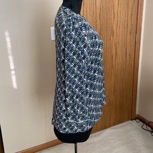 Lee Brand 3/4 Length Sleeve T-Shirt Style Top with Round Neckline in Muted Shades of Navy, Green, and White, Size XL