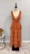 leena For Mac Duggal Burnt Orange Polka Dot Ruffle Tiered Maxi Gown - Reemoly