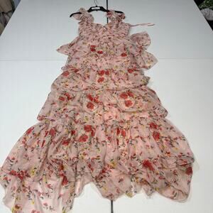 leena for Mac Duggal Pink Ruffled Floral Gown maxi dress size 8