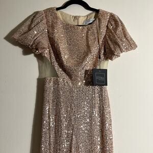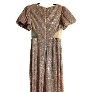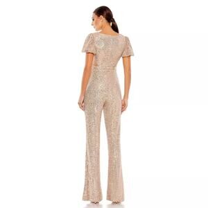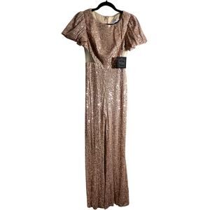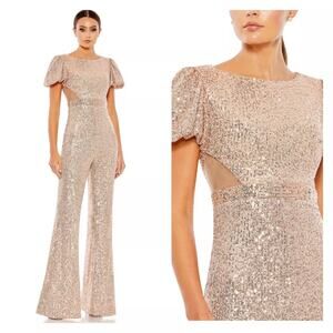 leena for Mac Duggal Sequined Puff Shoulder Illusion Cut Out Jumpsuit size 2 C5