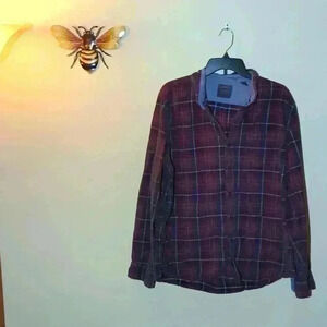 This is a long sleeve button up made by legacy. Men's Size XL black and red There are no noticeable marks or tears on the item.