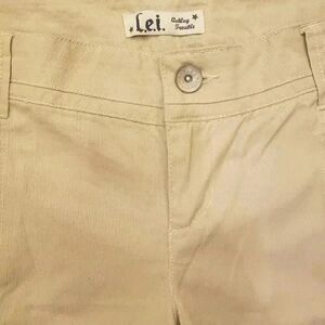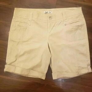 LEI ASHLEY TROUBLE Jrs Tan Pinwhale Bermuda Shorts EUC sz 17 w:36, r:9.5, is: 9 studded pockets