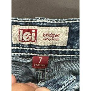 The l.e.i Bridget Bootcut jeans in size 7 offer a comfortable and flattering fit with a curve-hugging style. Made from denim fabric in a solid blue color, these jeans feature a zip closure and a 5-pocket design. The regular fit and comfortable features make them suitable for all seasons, whether it's winter, summer, fall, or spring. With the trusted LEI brand and easy care instructions of being machine washable, these jeans are a versatile and stylish addition to any woman's wardrobe.