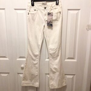 l.e.i. Juniors Ivory Vintage Wash Sophia Hiphugger Flared Jeans Size 5. New with tag. From smoke free home.