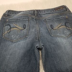 Size 13 regular. Tag says junior. Approximate measurements are waist 18". Rise is approximately 9". Inseam is 27". Raw edge hem. Nice condition.