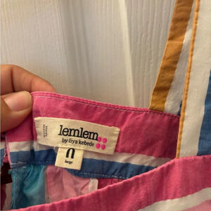 lemlem stripe strap dress with multicolor stripes 2 button closure and ruffles hem length top of shoulder to hem 45.5 inches