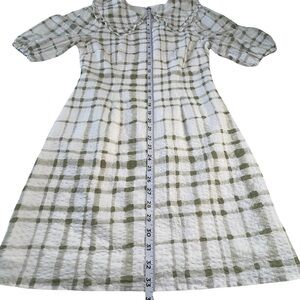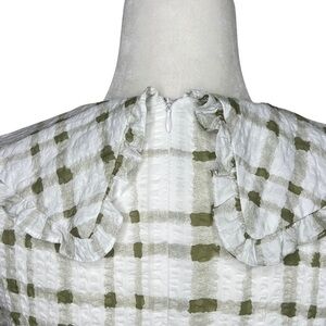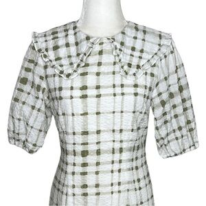 lena Mini Dress Ruffle Collar Short Puff Sleeve Preppy Plaid Green White Small S