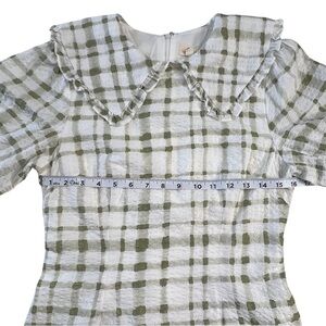 Ruffle collar puff sleeve mini dress from lena in green and white sz small.