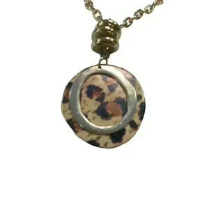 Nice leopard disk with steel ring overlay. Nice gold chain with lobster close.