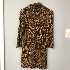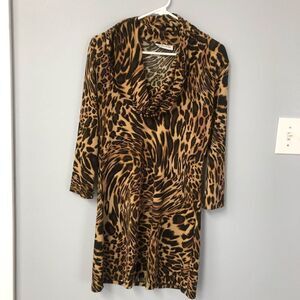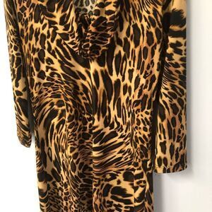 camille & co leopard cheetah print cowl neck 3/4 sleeve silky smooth mob wife dress size s/m y2k