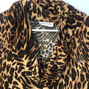 leopard cheetah print cowl neck 3/4 sleeve silky smooth mob wife y2k