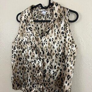 leopard cheetah vintage 90s poly satin sleeveless button up shirt animal print