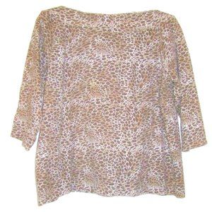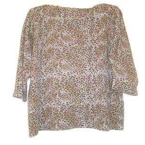 bateau boatneck boat neck 3/4 quarter long short sleeves mod t-shirt stretch knit beige white black brown ocelot 14 1x xl extra leopard cheetah animal print rockabilly retro top tee shirt size large 10 12 1x tshirt tee shirt