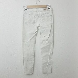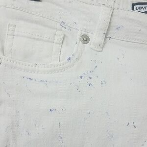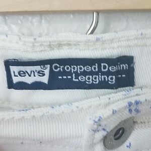 Levi's cropped denim legging. White jeans with blue confetti detail. Excellent condition! Elastic drawstring waist. Sz 12 Reg.