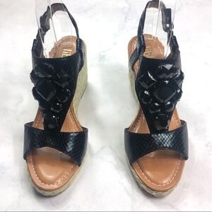 Libby Edelman by Sam Edelman Jewel Gem Espadrille Wedges. Dark Blue Metallic Snakeskin Style Color. Black Jewel. New. Never Worn. No stains or rips. Cute & Comfy.
