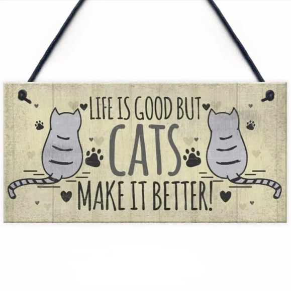 "life is good cats make it better" wooden sign wall decor, picture feline kitty