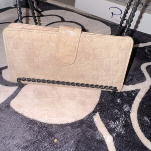 * Closure: There is a strap with a snap or button closure to secure the wallet.