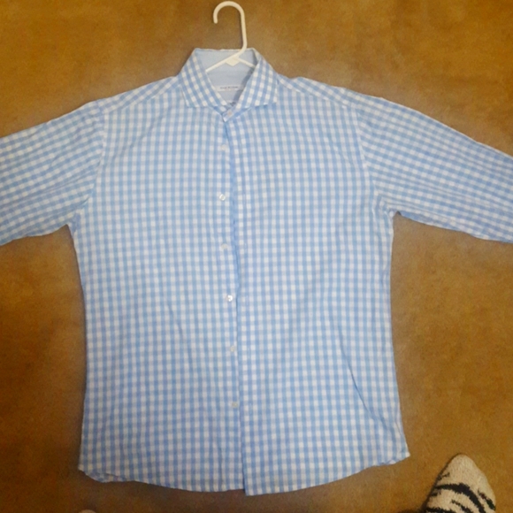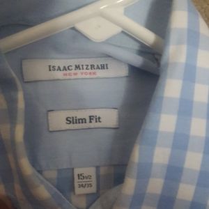 Issac Mizrahi slim fit light blue long sleeve gingham button down