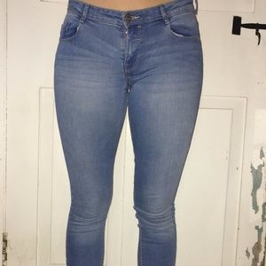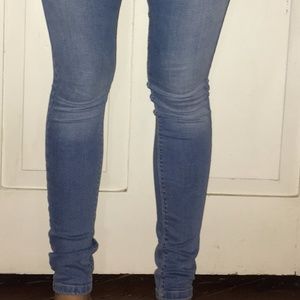 Light wash skinny jeans from Zara Denim. Super conformable and goes with everything. Model is 5'7" with perfect fit