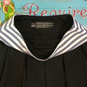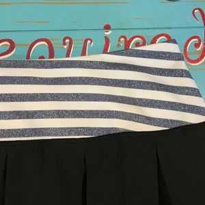 Super cute worn once size extra small black shirt with blue sparkle and white waist band has built in liner shorts under it has a pocket inside waist for key