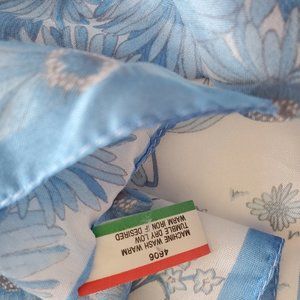 Blue 7 white scarf with daisies and lilies-Made in Italy-washable-Please ask any questions. All items come from a smoke free pet free home. Thank you for looking.