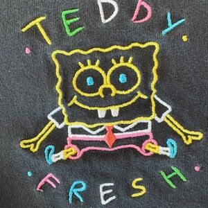 🖤 Rare Teddy Fresh x SpongeBob collab tee – washed black with embroidered SpongeBob design on front.