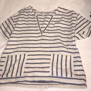 extremely light weight and casual, it is a fairly boxy piece and looks really nice with white jeans!(: