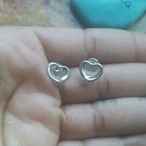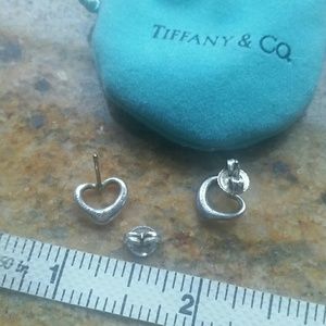 Sterling silver stamped open heart studs with post backs. Tiny pouch and authentic. Very good condition and well stored.