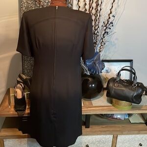 Leslie Fay black dress . Lightweight fabric, short sleeved and great for layering. Add accessories to brighten up or make a formal statement in pearls.