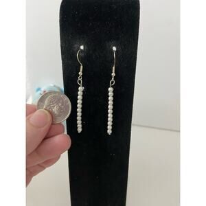 Cute lightweight handmade little white bead earrings faux pearl in good condition made with Upcycled beads and new wiring Pretty elegant childrens vintage necklace 90s or earlier flaws as pictured cute little light gray glass beads great for affordable bridal parties holidays special occasions glam preppy cottage Ravi Star jewelry co sustainable fashion