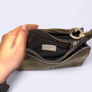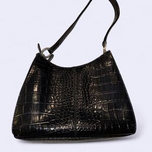 Used liz claiborne Black crocodile embossed shoulder bag with silver hardware