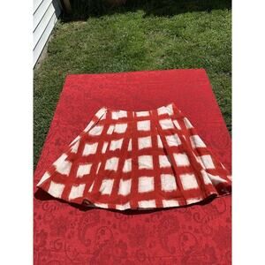 liz claiborne Red Cream Skirt Zip Front Lined Skirt Size 2p square plaid spring