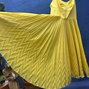 cute, retro, and flirty / pleated detail at breast and skirt with contrast darted pleats along bottom for added flare / good preowned condition with a faint pen mark on the back (last photo)
