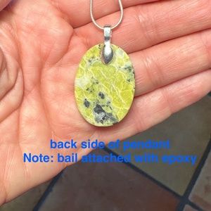 Buyer has the choice of 16, 18, 20, 24 or 30 inch sterling silver 1mm chain. The bail is silver plated.